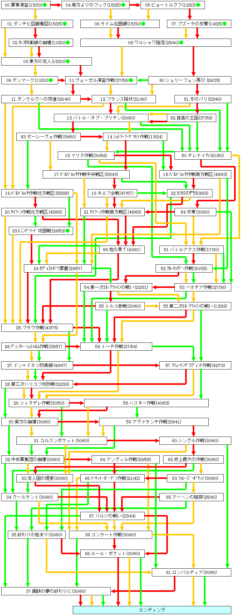 大勝利を続けて「残り都市数」(シナリオ間に表示)を0にすると、仮想(大勝利)エンディングとなりゲームは終了する。